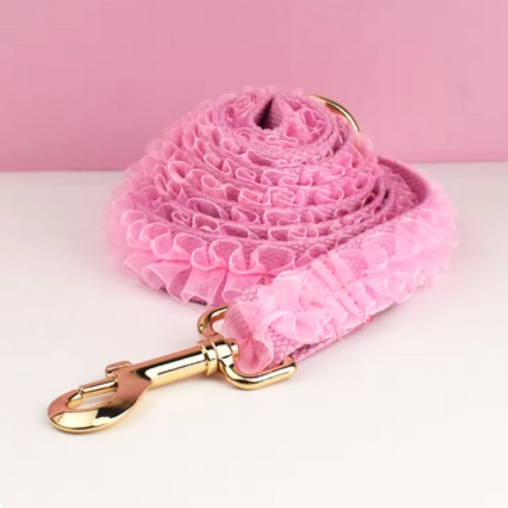 【フリルレース×サクラ】迷子札付犬の首輪&選べるリードセット