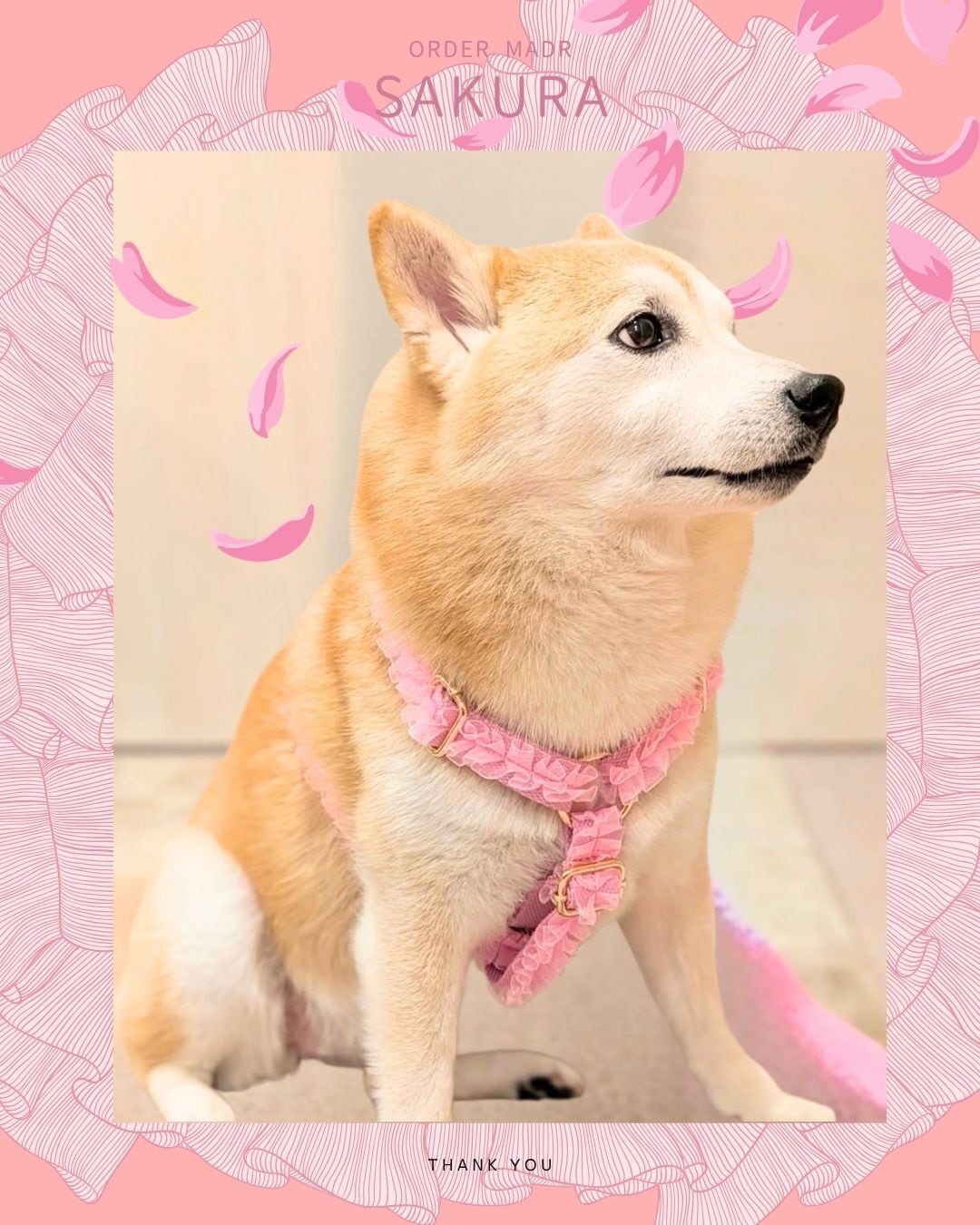 【フリルレース×サクラ】迷子札付犬のサイドバックルハーネスと選べるリードセット