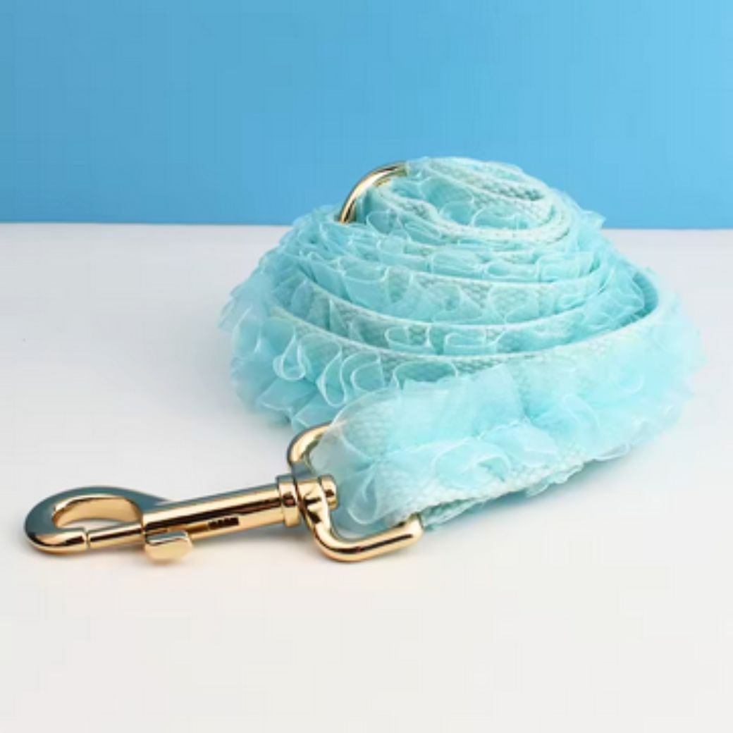 【フリルレース×アクア】迷子札付犬の首輪&選べるリードセット