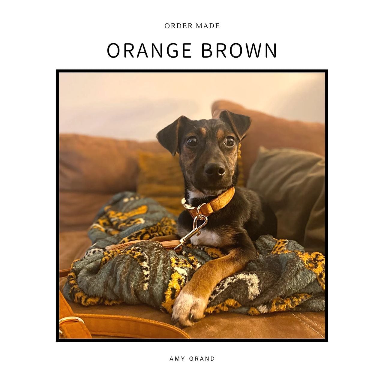【ベルベット×オレンジブラウン】迷子札付犬の首輪・選べるリード&リボン&フラワーセット