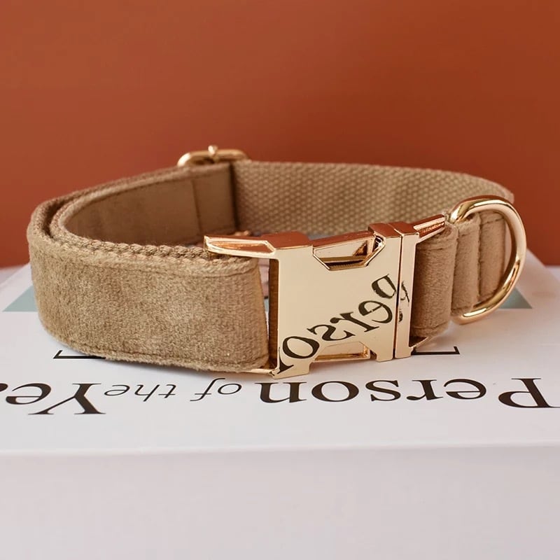 【ベルベット×カフェラテ】迷子札付犬の首輪、選べるリード、リボン&フラワー