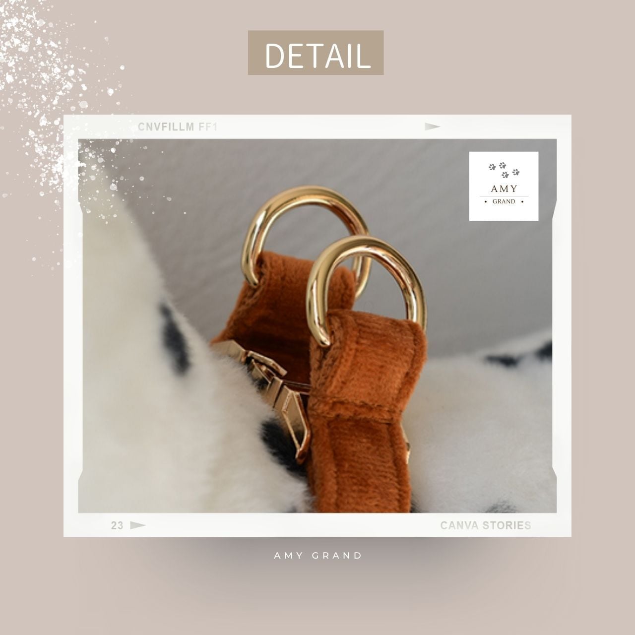 首輪をする想定でややゆったりめに、指2本分が入る程度の余裕を持たせてください。