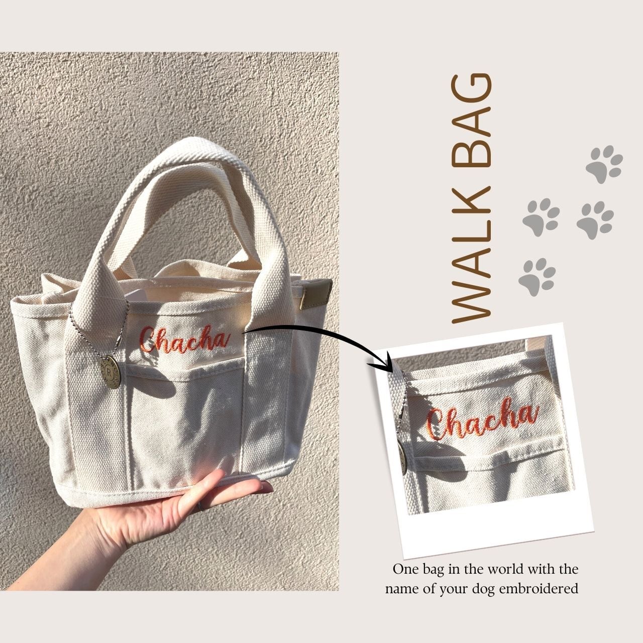 960通りの組み合わせから選べて愛犬の刺繍名前を入れられる。世界にひとつのキャンバスお散歩バッグ