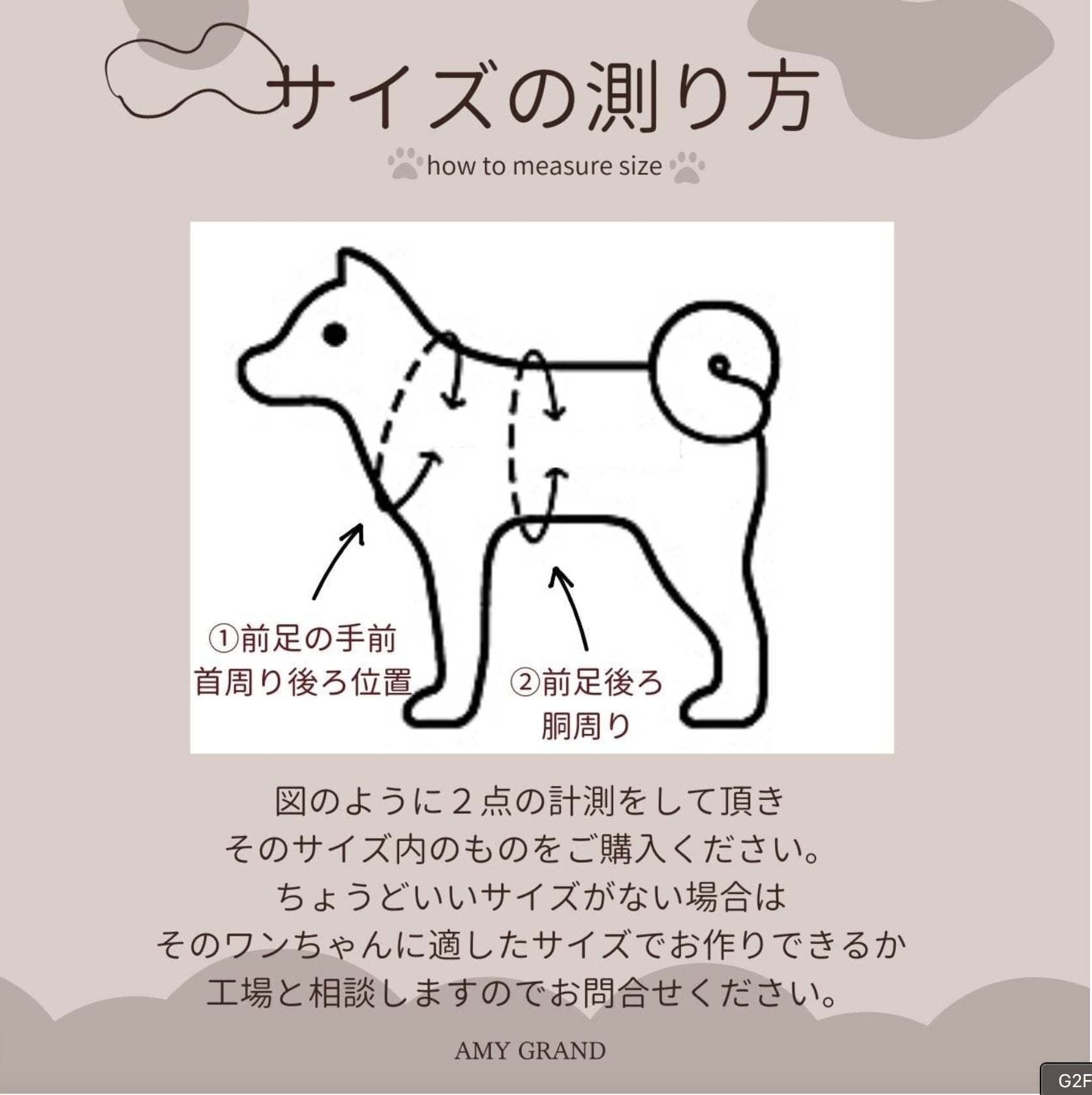 こちらの商品はオーダー品のため交換ができません。以下の方法でサイズを確認してください。必ずワンちゃんの首周り、胸囲を測ってください。