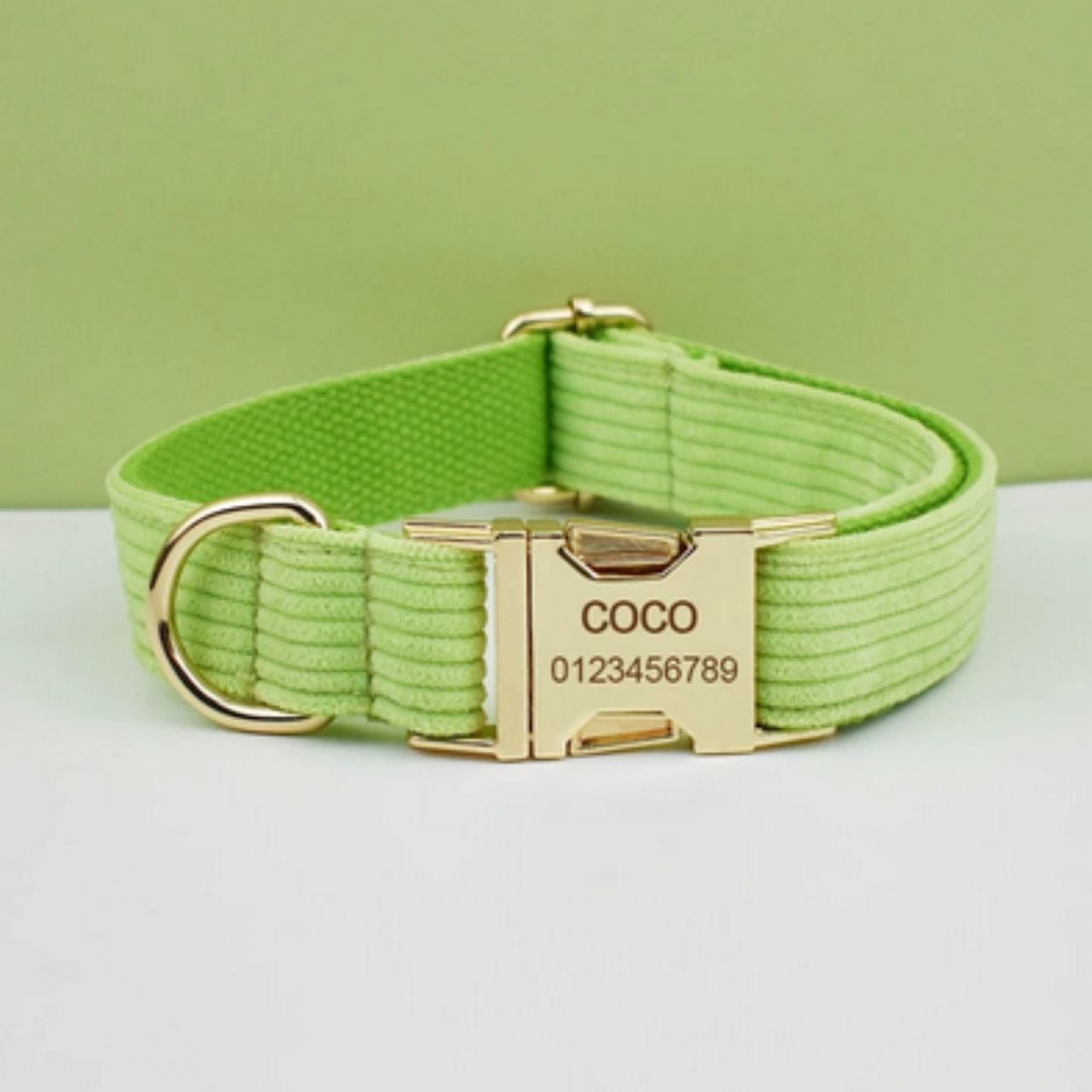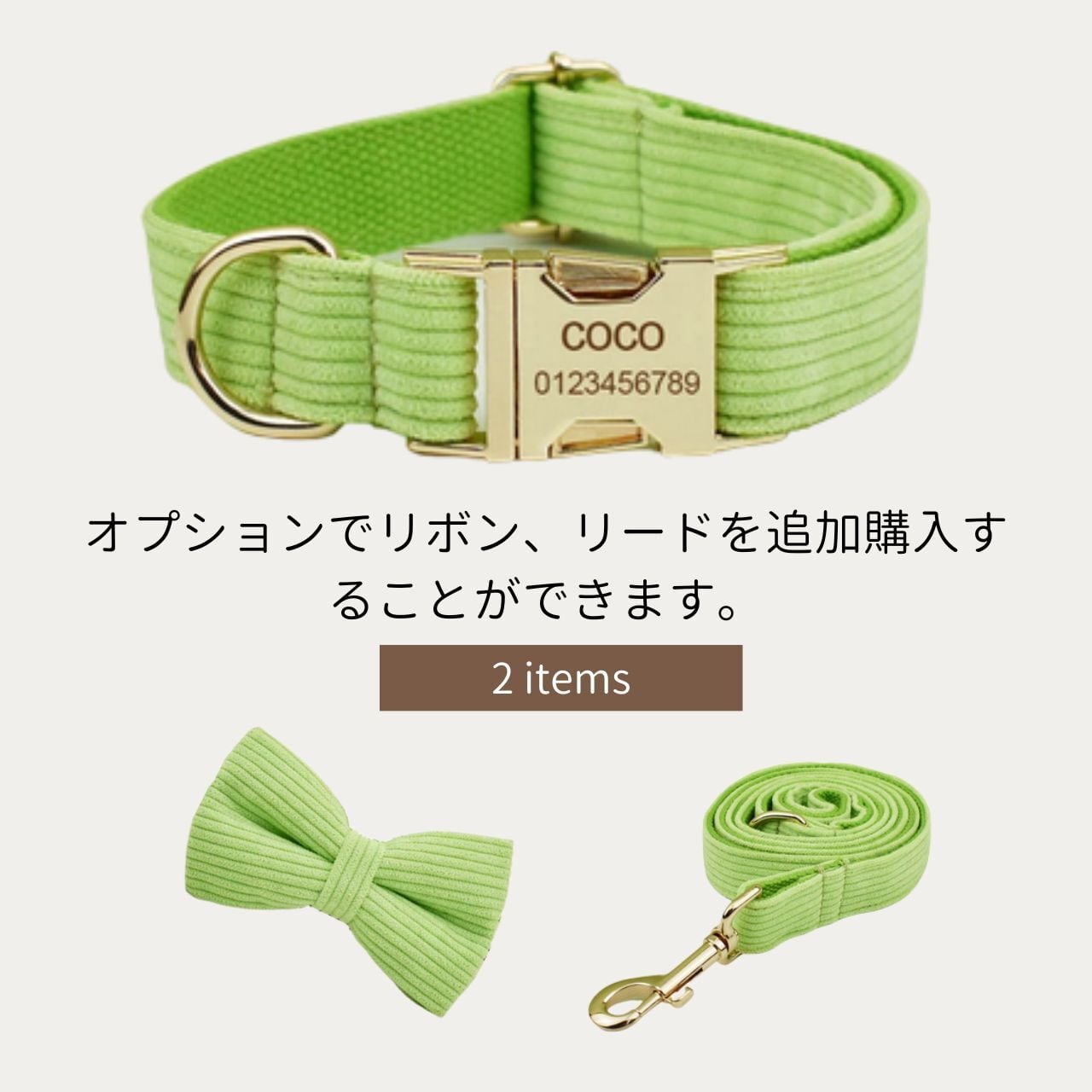 【コーデュロイ・ライムグリーン】迷子札付犬の首輪選べるリボン&リードセット