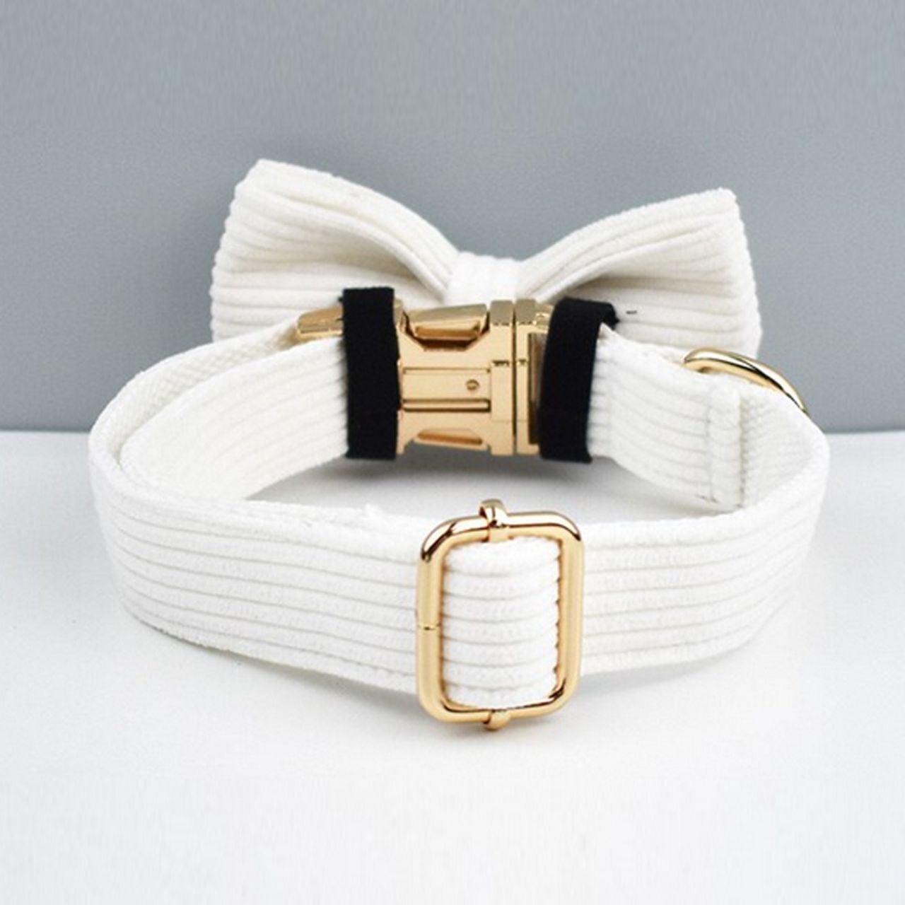 【コーデュロイ・スノーホワイト】迷子札付犬の首輪選べるリボン&リードセット
