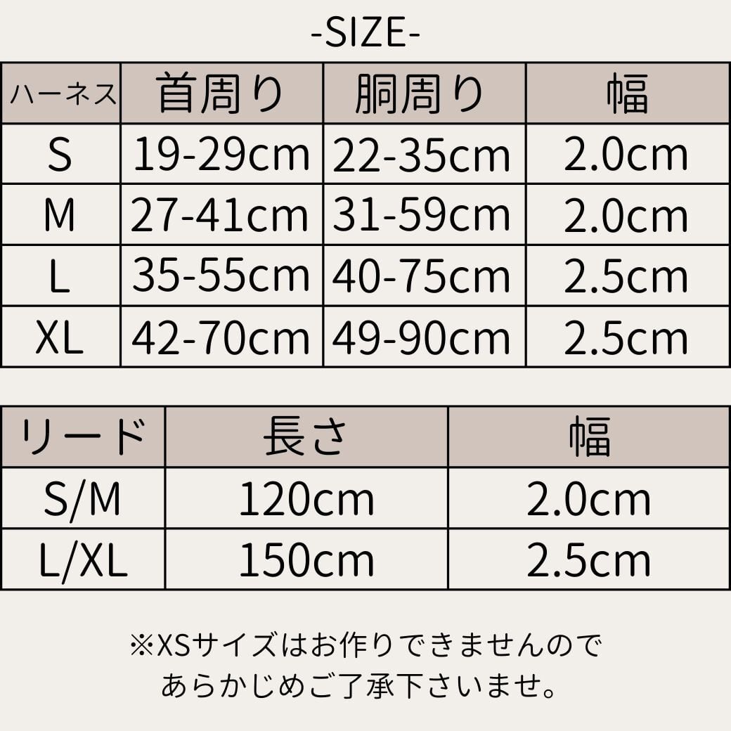 こちらの商品はオーダー品のため交換ができません。以下の方法でサイズを確認してください。必ずワンちゃんの首周り、胸囲を測ってください。
