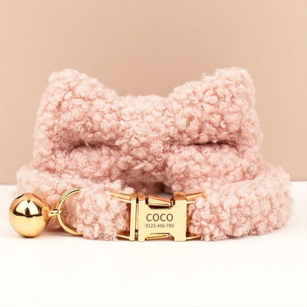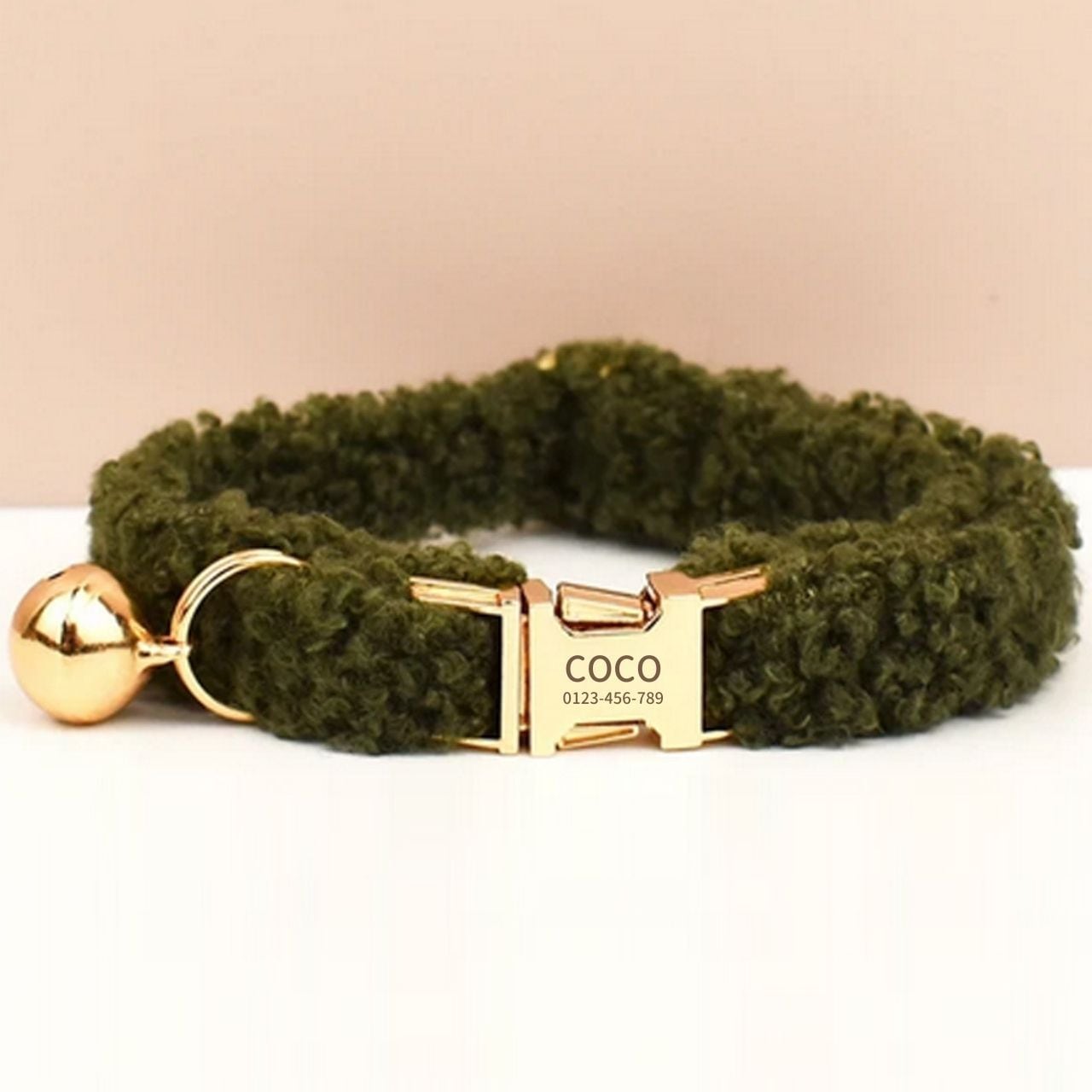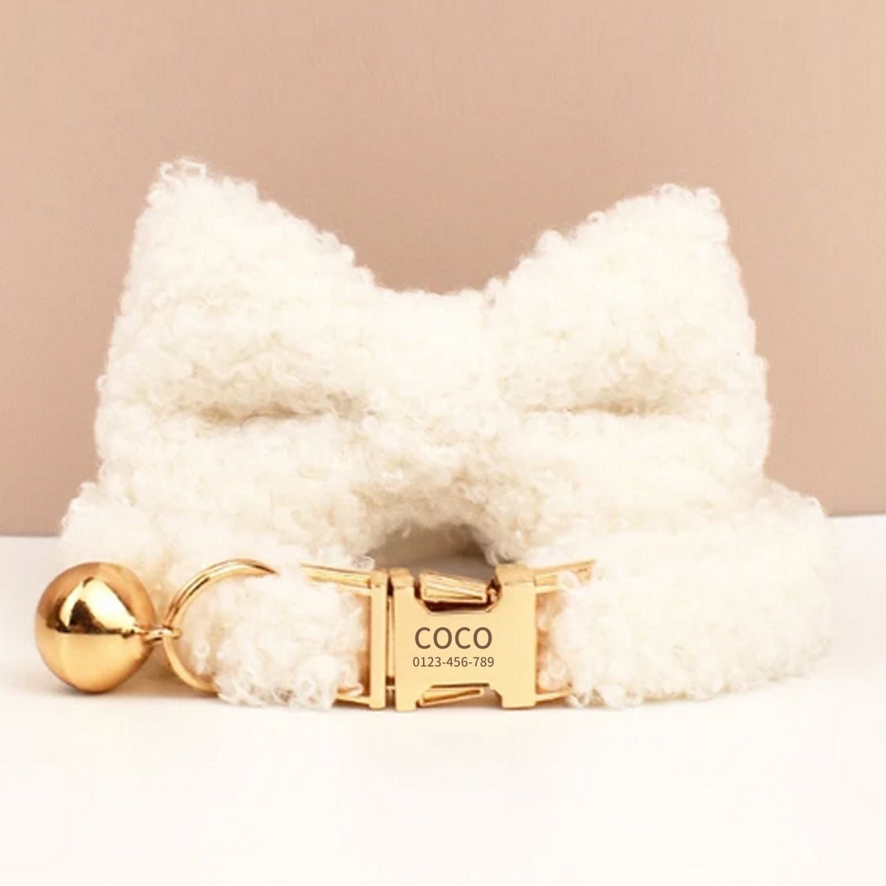 【プードルファーシリーズ】鈴付き猫の首輪 刻印サービス 迷子札