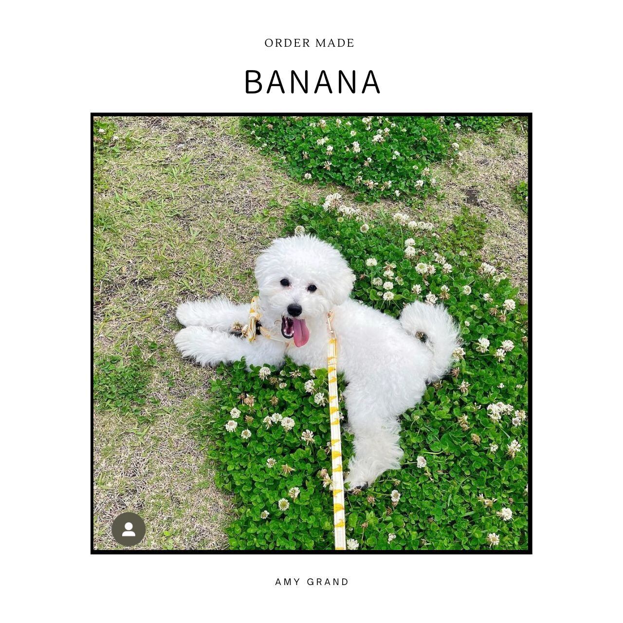 【バナナ】迷子札付犬のサイドバックルハーネスと選べるリードとリボン